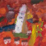 Toren in landschap, olieverf op papier 21,5 x 22,5 cm, gesigneerd r.o. en gedateerd 5.56
